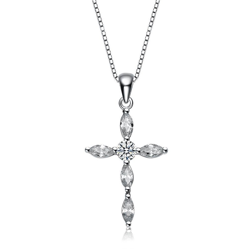 Our Vintage Marquise Cross Cubic Zirconia Pendant will never go out of style, crafted in 92.5 Sterling Silver its the perfect choice. Size 47.1 mm x 9.5 mm.