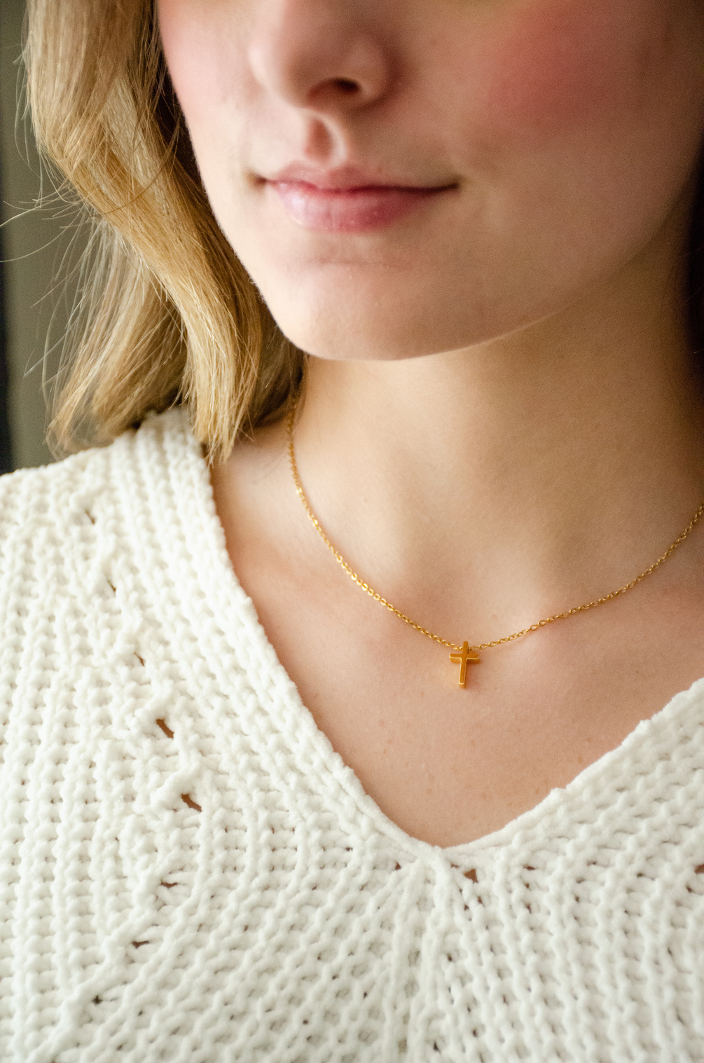 Take advantage of our retail pre launch sale. Perfect for the minimalist. Our Tiny 18k Gold Plated Stainless Steel Mirror Polished Cross Pendant is beautiful and is perfect for everyday wear. The cross size is .5 inches long x .3 inches wide x .1 thick. The included chain size is 16” with 2” extender. The cross comes with our signature card that reads “Today, I am sharing my Faith with you and praying that this token will help remind you that you are never alone". Learn more at www.mysharedfaith.com.